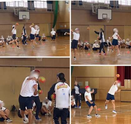 選手の方がシュートの見本を見せてくださったり、「考えて動くこと」を教えてくださったりしました。最後はみんなでゴールに向かってシュートしました。楽しくて、いい経験が出来ました。コーチや選手の皆さん、ありがとうございました。