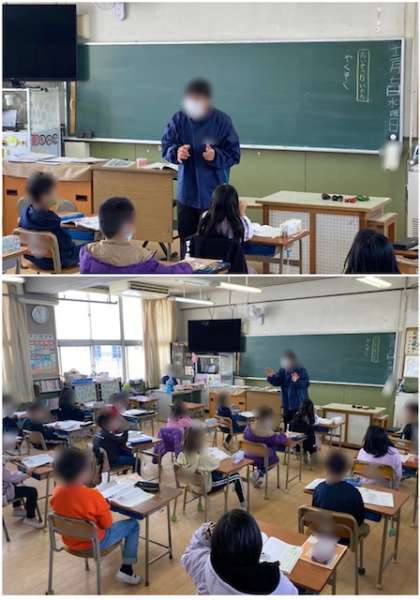 教材に書かれているシチュエーションを、それぞれで想像しています。