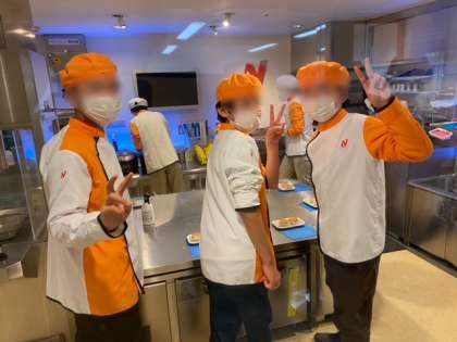 アクティビティが始まりました。見たことのあるお店で、そのお店の従業員の服を着て働いてます。