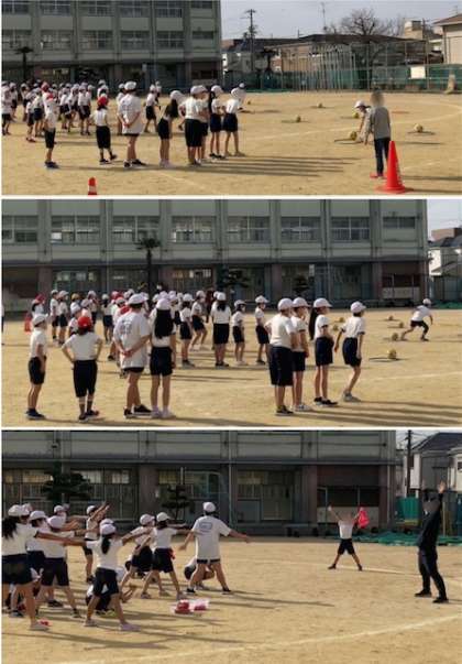 4年生は体育で、ゲストティーチャーを招いて「投の運動」につながる動きを体験しました。