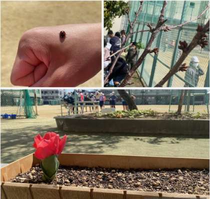 テントウムシ、桜の蕾(花芽)、チューリップ、春がすぐ近くまで来ています。