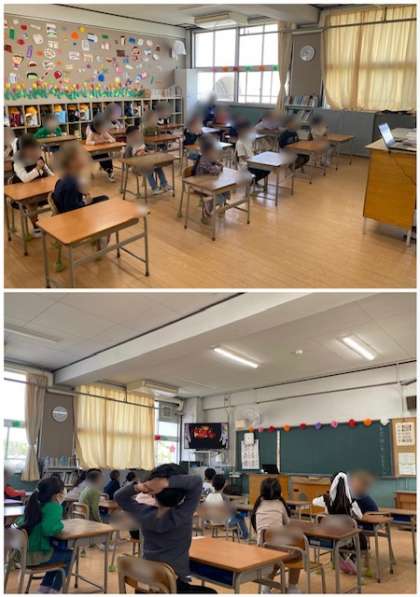2組は、教室で小学校での生活について映像を観て学習しました。