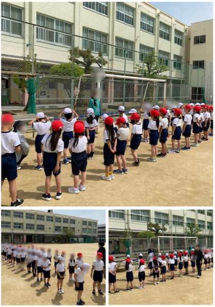 発育測定で身長をはかったので、背の順に並びました。また、矢田中学校から体育の先生に来てくれました。みんなに紹介されました。