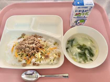 4月17日(月)の献立は「ビビンバ・トック・牛乳」でした。