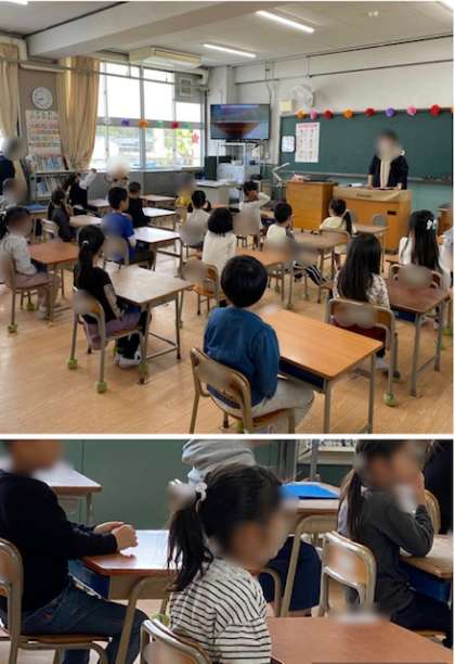 1年生の朝の様子です。静かに着席して、先生の話を聞いています。聞く姿勢がいいですね。