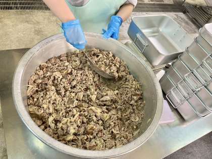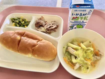 今日はいくつかあるパンの種類の中でも、サツマイモが生地に練りこまれた「おさつパン」が出てきて人気を博していました。明日の給食も楽しみにしてくださいね。