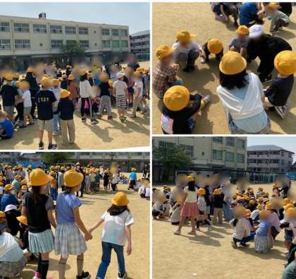 全校児童と、最後は先生たちも一緒にゲームをしました。