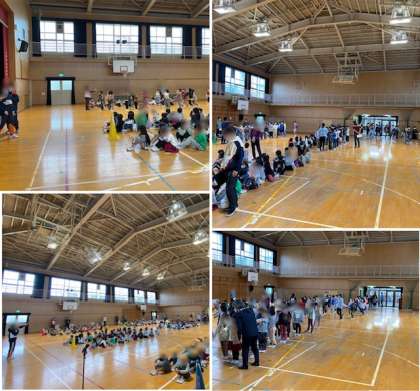2時間目に、避難訓練を実施しました。雨が降っているので体育館に集合しました。避難指示の放送があってから、前の人を押さずに、静かに走らず、しゃべらず口もとをハンカチで押えて、教室やもとの場所にもどらず、避難できました。集まってからも、校長先生の話、担当の先生の話を体を話をしてる人に向けて、しっかり聞くことができました。