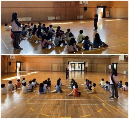 今日は、2年生が1年生に学校を案内する日です。まずは2年生で打合せをしました。いよいよ、グループに別れて1年生を案内して回ります。