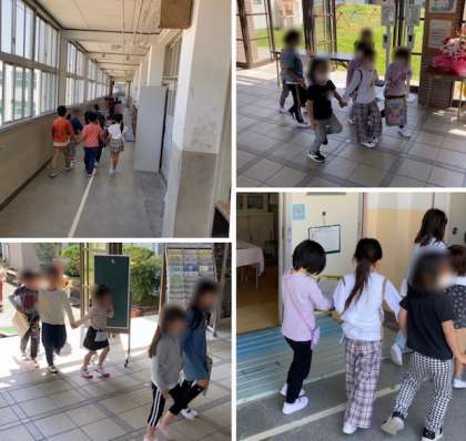 グループごとに、2年生が1年生を連れて案内をして回ります。