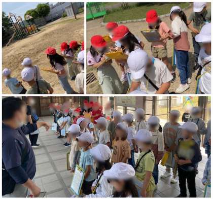 「わたしたちのまのようすを調べよう」ということで、学校の外に飛び出して(グループごとに分かれて)調べました。