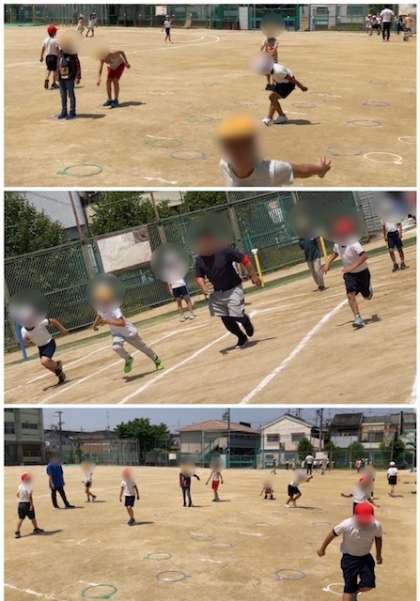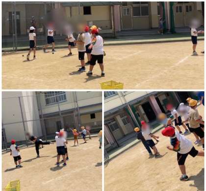 今日の業間(2時間目と3時間目の間の休み時間)は、3年生が業間体育を行いました。走ったり、投げたりする運動でした。