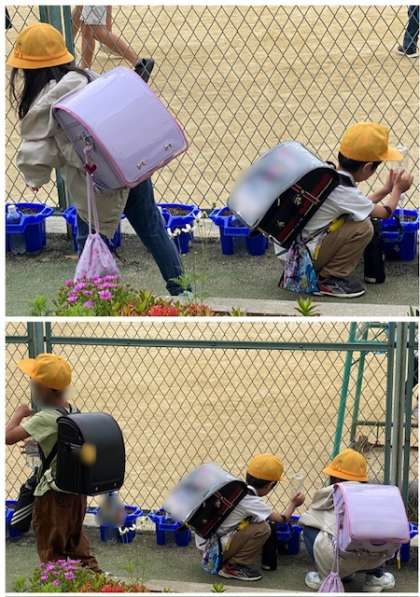 1年生は、朝登校したらすぐにアサガオの水やりをしています。元気に育ってほしいですね。