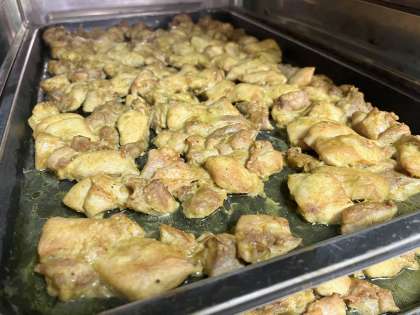 今日の児童の感想には「お肉がスパイシーで美味しかったです。」「お肉にカレー味がして美味しかったです。」「コーンのサラダが美味しかったです。」等がありました。