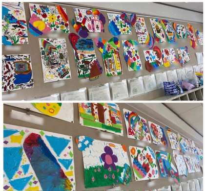 2年生は「ふしぎな たまご」という絵画を描きました。とてもカラフルで、カラフルなたまごから、カラフルな生き物やいろんなものが出てきました。想像力をフル稼働してできた作品に仕上がりました。