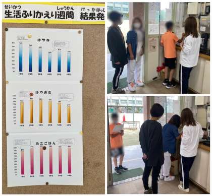 先週一週間で行った「生活ふりかえり週間」の発表をしました。朝ごはんを食べて来る、はずいぶん達成できていましたが、はやね、はやおきが難しいのかな?早く寝ないと早く起きられないですよね。早く寝て、早く起きる習慣をつけて健康な身体になりましょう。