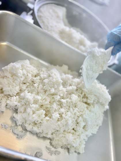 ごはんの銘柄は北海道産の「おぼろづき」です。炊き立てだけでなく、冷めてもパサつかずもちもち感があるので、逆に冷めても美味しいのが特徴だそうです。