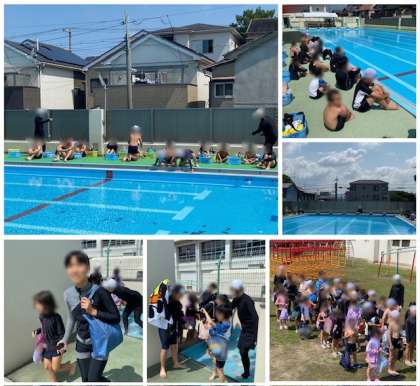 今日は好天のもとで、1,6年生でプール開きを行いました。6年生が、1年生とペアでプールに入りました。