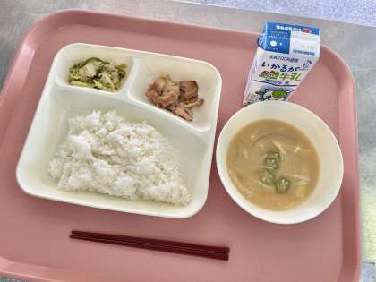 6月22日(木)の献立は「ごはん・牛乳・鶏肉のしょうゆバター焼き・みそ汁・野菜いため」でした。