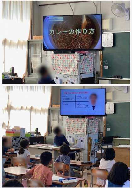 ?朝の時間を使って、給食の紹介VTRを見ました。給食室での「カレーの作り方」でした。野菜を洗う行程では「ジャガイモ何個あるのかな」とか、皮剥き機を見て「すごい、一気に皮むけてる」とか、様々な驚きがあったようです。