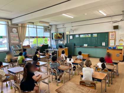 本校では食育の観点から、児童がより給食に興味を持つように、給食調理の動画を視聴する取組を開始しました。動画は給食調理を担当する職員の説明付きで、第1回目は「カレーの作り方」でした。動画の最後には「何を作っているでしょうか?」というクイズ形式の動画もあり、児童は最後までまじまじと視聴していました。動画は学期に1回程度更新していく予定です。