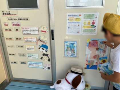 大変暑い日が続きます。保健室前には「暑さ指数」を表示しています。熱中症の予防についても書いているので、よく見てください。外で元気に遊ぶことも大事なのですが、暑さ指数に気をつけて、遊ぶことをひかえることも大事です。