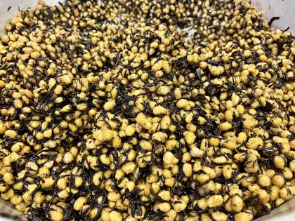 「豆がこりこりしてて、ごはんと一緒に食べたら美味しかった。」
