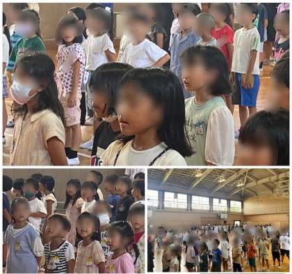 最後にみんなで校歌を歌いました。暑さに負けない元気な歌声が、講堂に響きました。良い夏休みを、2学期を迎えられそうな、気持ちのいい歌声でした。