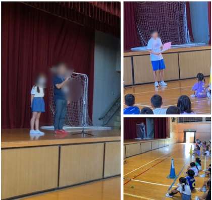 転入生の紹介と、新しくこられた先生の紹介から始まりました。その後、校長先生の話、生活指導の先生からの話がありました。