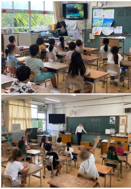 1時間目、始業式の後の教室を覗きました。さっそく夏休みの思い出をお話していました。