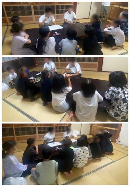 生活班の班長、カレー班の班長、活動班の班長たちでそれぞれ集まって、最後のミーティングをしました。明日の予定を確認しました。