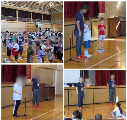 先生の紹介、教育実習生(先月から来られていた皆さんが終了しました)のあいさつ、9月からの転入生の紹介がありました。