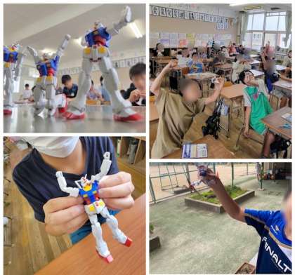 今日は、バンダイ?の協力でガンダムのプラモデルを作って、部品の枠であるプラスチックを回収する(作るだけが目的ではない取組です)、SDGsの活動をしました。出来上がりがとてもかっこいいですね。色も付いていて、私の子どもの頃とは大違いですね。