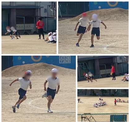 3年生は、運動会のかけっこの練習をしました。コーナリングに気をつけて走りました。