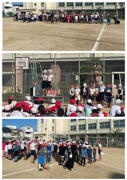 今朝はとても気持ちのいい秋空の下で、児童集会を行いました。運動会を前にして久しぶりの運動会種目を、集会委員会が用意してくれました。