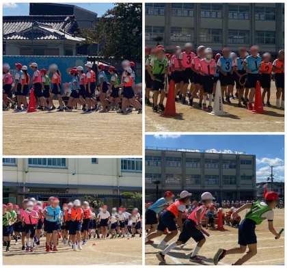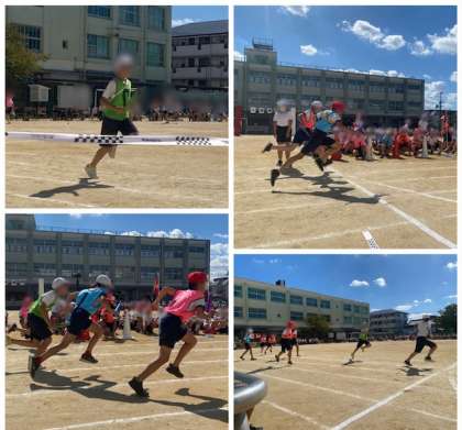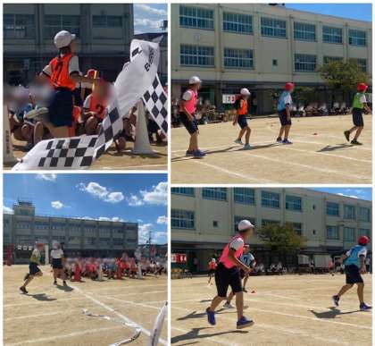 1本のバトンをテームでつなぎました。5年生、ONE TEAMで。さすが高学年です。
