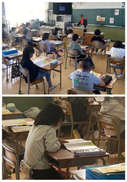 道徳の時間です。先生の読む話をみんなが集中して聞いています。