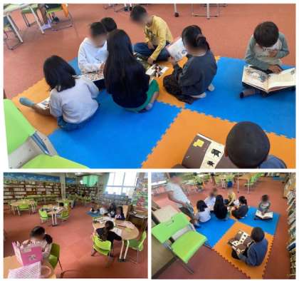 図書室を使って本を読んでいました。2年生は、この下に座って読めるスペースが大好きです。