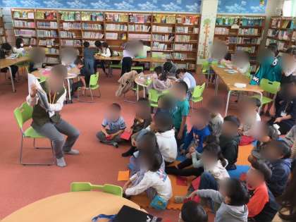 本校の読書週間に合わせて、本日の昼休み、事業担当主事が絵本の読み聞かせを図書室で行いました。読み聞かせの絵本は「青少年読書感想文コンクール」の課題図書の「給食室のいちにち」で、給食がどのようにして作られているかがわかる内容でした。事業担当主事の読み聞かせは明日も行われるそうです。