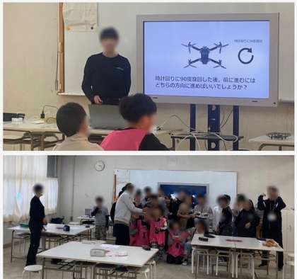 5年生は、和泉市の株式会社MIRAIOさんをお招きして、プログラミング学習の出前授業をしてもらいました。ドローンを使ったプログラミング学習です。