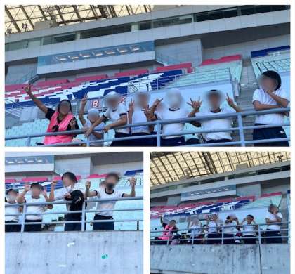 最後は各小学校から男女の代表チームを出して、400mリレーです。スタンドからの声援が、スタジアムを埋めました。