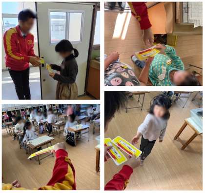 先週のパワーアップ週間チャレンジでは、しっかり目標を達成したので、例の「アレ(A.R.E)」、「宿題なしチケット(12月15日のみ有効)」を各教室に配りに行きました。みんなの頑張りが形となって成果となって現れました。よく頑張りました!