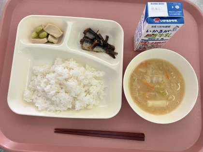 12月8日(金)の献立は「ごはん・牛乳・いわしのしょうが煮・みそ汁・高野どうふの煮もの」でした。