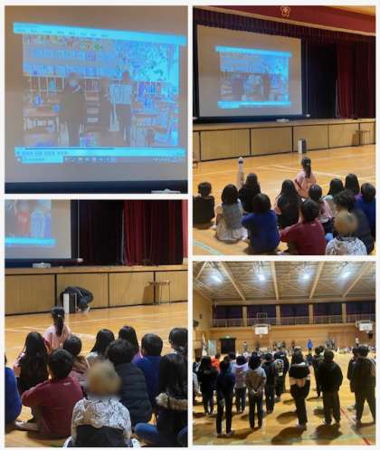 3年生は、韓国朝鮮の言葉、ハングル語を紹介しました。言葉当てクイズや、会話などを上手に紹介できました。