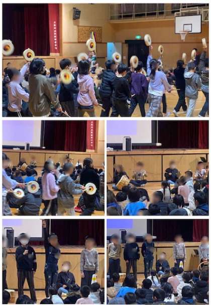 4年生は、韓国朝鮮の楽器の紹介と、演奏をしました。楽器ごとに雲、風、雨、雷と表しています。演奏もみんなピッタリ合わせてとても上手でした。