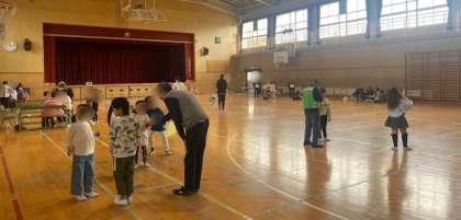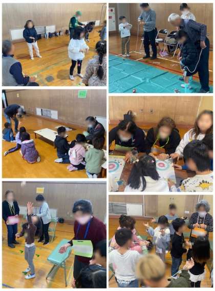 昔遊びは、けん玉、おはじき、めんこ、おてだま、こままわし、あやとりの6つです。初めての経験だった子もいたようです。地域の方に丁寧に教えていただきました。