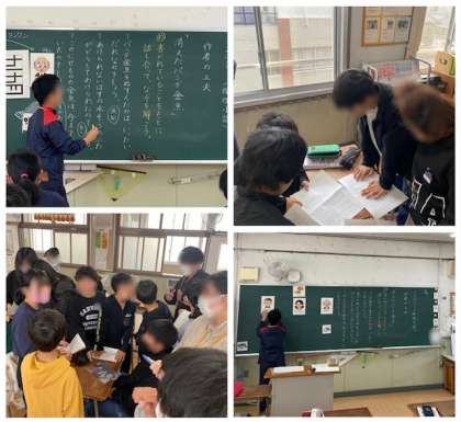 ミステリー(推理小説)を読み解こう、という特別授業を行いました。「消えたパンダ金魚」の謎をみんなで考えました。作者の表現の工夫をしっかり読み取れば、犯人は誰なのか、どうやったのか、いろんなことがわかりました。