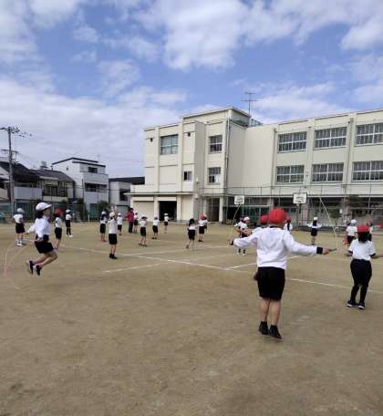 2年生は体育科で「なわとび」やいろいろな「鬼遊び」をしています。