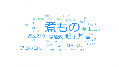「給食の親子丼は普通の親子丼じゃなくて卵がふわふわじゃなかったけど、美味しかったです。」