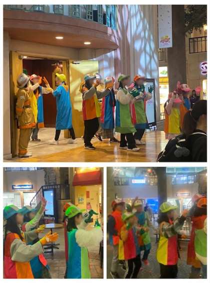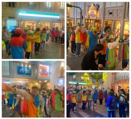 最後にパレードに参加しました。笑顔でダンスして、みんなで掛け声をかけながら、キッザニアの中を回りました。